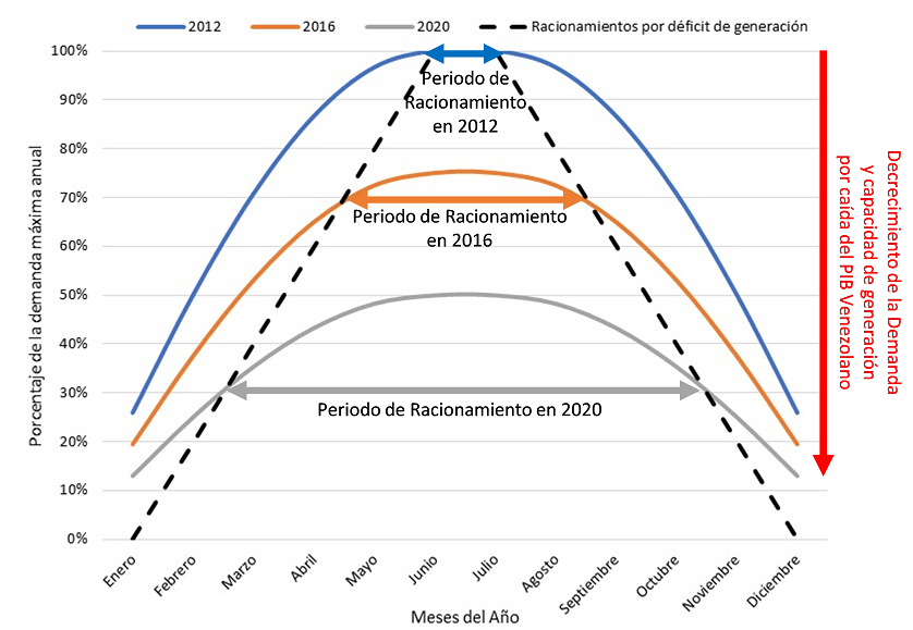 Todos los años, desde el año 2012, ha habido racionamientos por déficit de generación en Venezuela. Esto es consecuencia de la debacle del sistema eléctrico que se inicia en el año 2010 con la creación de Corpoelec y la desaparición de las empresas eléctricas publicas regionales. Las consecuencias de esa pésima decisión del gobierno nacional comienzan a verse con claridad en 2012. En ese año, tomado en esta explicación como año inicial, el período de racionamiento por déficit de generación fue corto, entre junio y Julio. Este período de racionamientos fue expandiéndose de forma simétrica durante los años 2013, 2014, 2015 y en 2016 vemos como el período de racionamientos por déficit de generación ya abarca un período mayor entre los meses de abril y septiembre. En 2016, el gobierno cantó victoria sobre la crisis justamente en el mes de octubre, afirmando que la crisis había sido superada. Sin embargo, en los años siguientes, 2017, 2018, 2019 y 2020 los períodos de racionamiento por déficit de generación fueron haciéndose más extensos llegando este año a cubrir desde mediados de febrero hasta mediados de octubre del presente año.